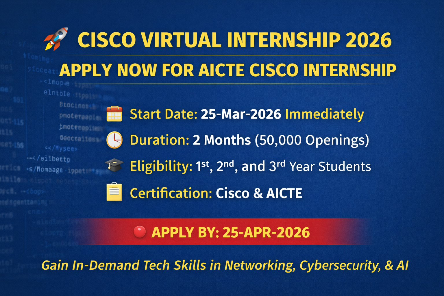 If you are serious about building a career in Networking, Cybersecurity, or AI, this internship is definitely worth applying for.